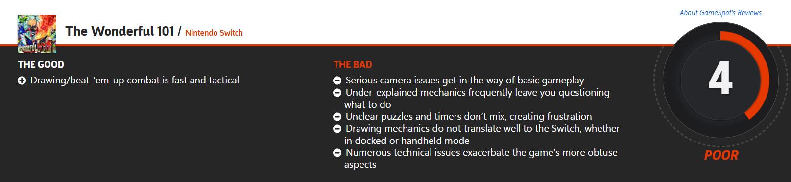 GameSpot表示,游戏战斗系统爽快且富有策略性,但严重的视角问题阻碍了基础的游戏玩法、一些没有解释明白的谜题以及计模式混合在一起,会造成玩家在体验方面的挫败感、对游戏机制的介绍说明不够清楚、原版的一些游戏机制没有在Switch主机或手持模式上得到充分展示、各种技术问题让游戏体验更加迟钝。(GameSpot基于对游戏Switch版的评测)