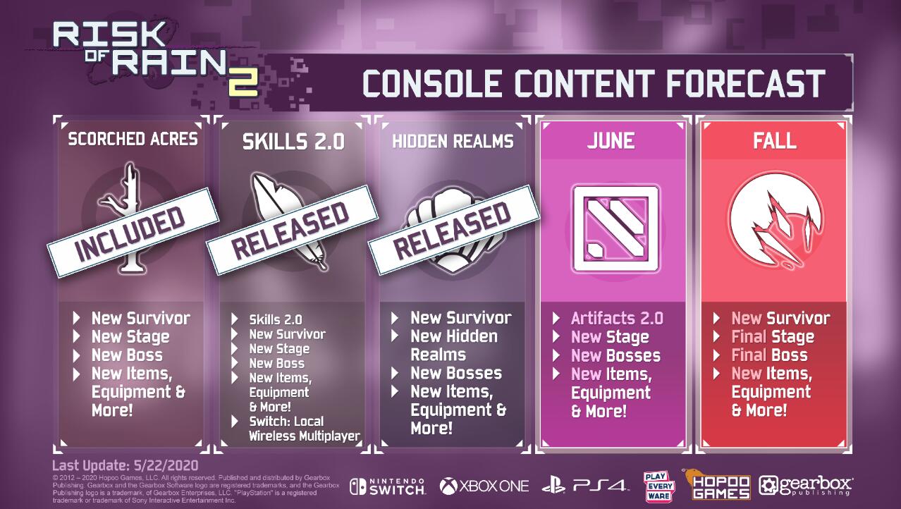 【《雨中冒险2》1.0正式版更新将延期至今年8月推出】Hopoo Games旗下游戏《雨中冒险2》目前在Steam平台处于抢先体验阶段,近期官方确认原定于今年春季上线的1.0正式版,将延期至今年8月推出。开发团队表示希望通过丰富充实更新内容,来为玩家们带来更完整的游戏体验。此外主机版则将于今年6月推送更新,并预定于今年秋季带来1.0正式版更新内容。