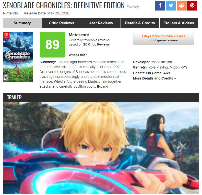 《异度神剑:决定版》媒体评分出炉,IGN8分GameSpot9分MC均分89