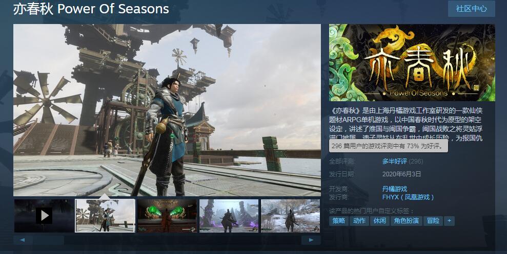 【《亦春秋》Steam多半好评,玩家吐槽打击感弱音效糟糕】丹橘游戏开发的仙侠动作RPG《亦春秋》现已登陆了Steam平台。游戏现处于EA测试阶段,首周特惠价50元,游戏好评率73%整体评价多半好评。从评论区看,大部分玩家认为50块钱售价对于这样一款作品来说还是比较划算的。但是作为一个十几人的团队,游戏在上线之初也不免存在着一些问题。首先游戏的打击感较弱,人物的战斗动作有些不流畅。其次游戏音效非常糟糕,这点官方也表示会在之后进行更新。此外,游戏画面优化差掉帧的问题也时常出现。官方表示后续会对游戏的画面、音效以及战斗打击感方面进行优化。