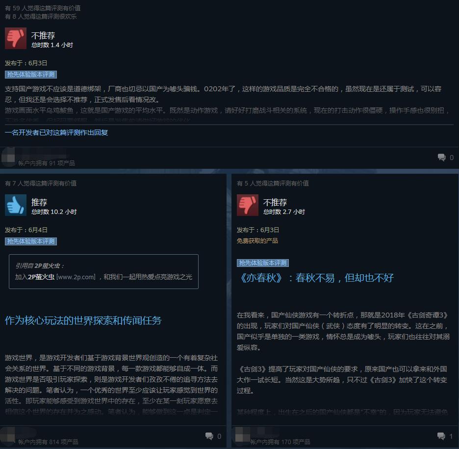 《亦春秋》Steam多半好评,玩家吐槽打击感弱音效糟糕