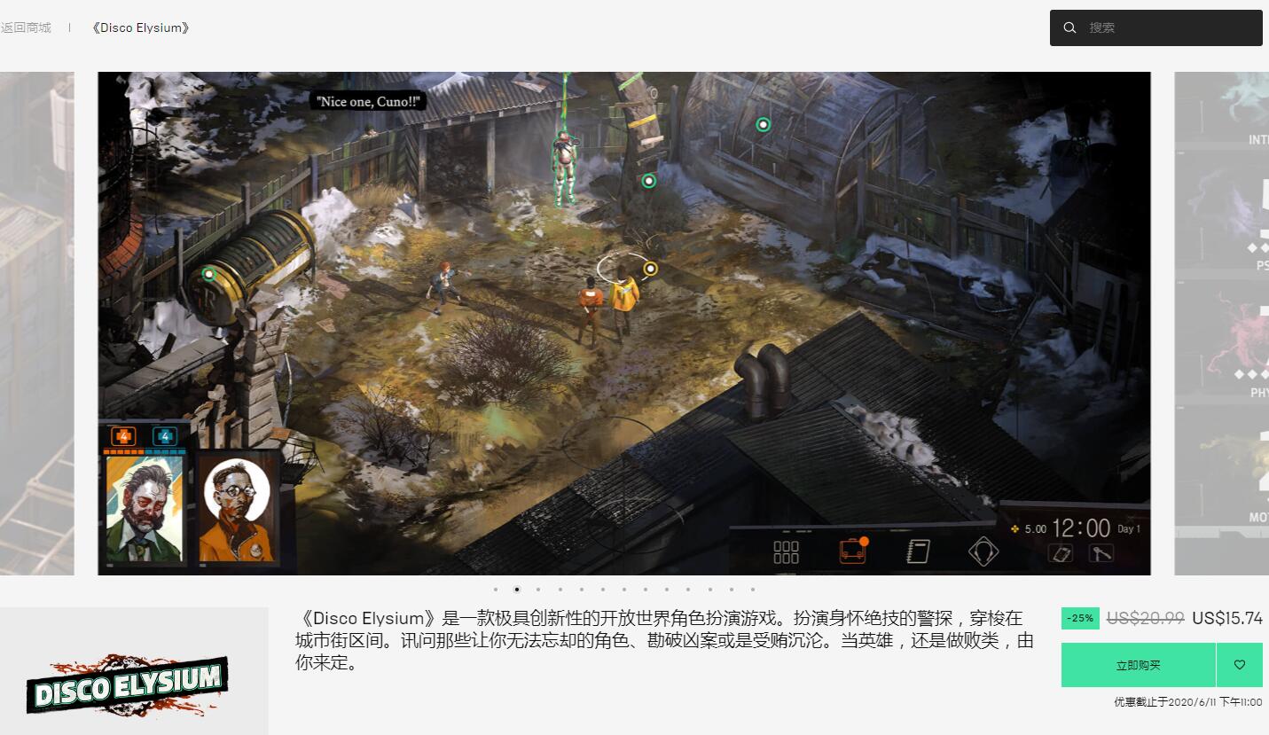 【Epic《极乐迪斯科》7.5折特惠中,用券仅需5美元】《极乐迪斯科》目前正在Epic平台开启7.5折特惠,售价15.74美元。而如果你的库中还有10美元的优惠券,仅需5.74美元(约40元)即可将之收入囊中。优惠截止至6月11日。