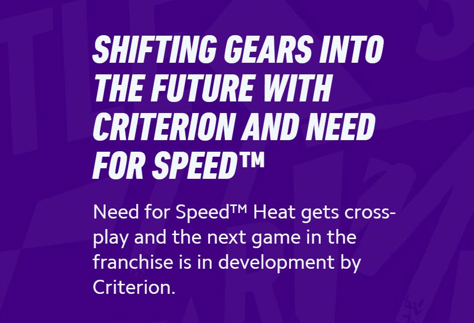 【《极品飞车》新作开发中,或将在EA Play上公布】Criterion工作室的经理Matt Webster今日在社区博客中确认,下一款《极品飞车》作品目前正在由Criterion工作室紧张开发中。除此之外,没有透露关于新作的其他消息。而一同公布的还有,《极品飞车:热度》将于6月16日加入EA Access以及Origin Access免费游戏库,且将于明日起支持跨平台联机游戏。Matt Webster还表示在北京时间6月19日早上7点的EA Play上将会公布更多有关《极品飞车》的消息。或许系列新作也会在发布会上亮相。