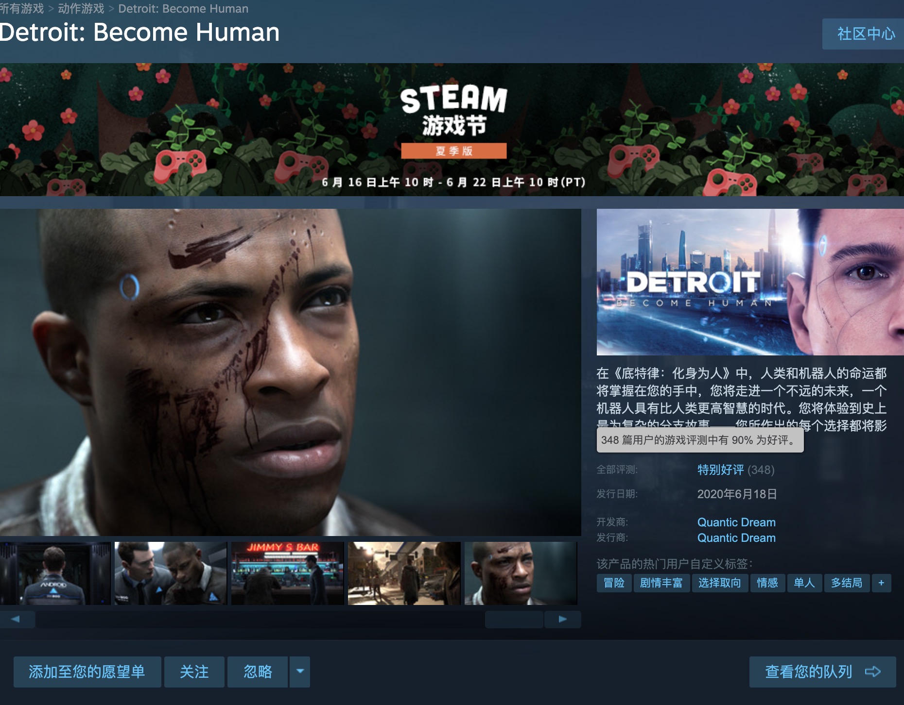 《底特律:化身为人》Steam首日特别好评