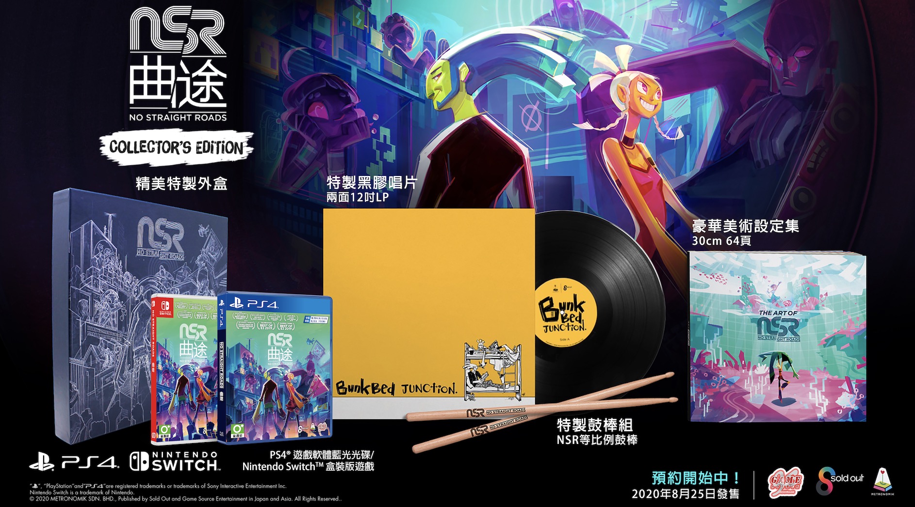 【音乐冒险游戏《曲途》8月25日正式发售】GSE今日宣布,音乐冒险游戏《曲途》将于8月25日登陆PS4、Xbox One、PC及Switch平台,游戏支持中文。本作由《最终幻想15》的首席设计师 - Wan Hazmer,以及《街头霸王5》的插画师 - Daim Dziauddin 共同监修,他们都希望可以在打造出音乐游戏外,提升音效在游戏中所担当的角色比重,并透过丰富多彩的图像来阐述充满音乐文化及意念的故事。PS4及Switch限定版将包括特质外盒、黑胶唱片、特质鼓棒以及豪华美术设定集。