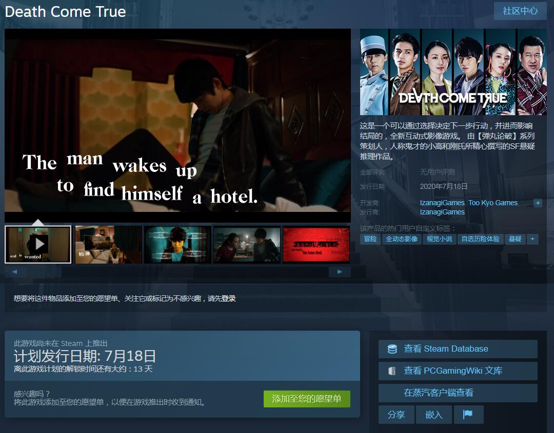 【小高和刚悬疑推理新作7月17日登陆Steam】《弹丸论破》系列策划人小高和刚的新作《终结降临》宣布将于北京时间7月17日下午16点在Steam上推出,目前游戏已经上架,支持中文。本作是一款真人互动式悬疑推理游戏游戏,本乡奏多、栗山千明、森崎温、梶裕贵、山本千寻、佐藤二朗等人参与演出。此外,本作也会发售PS4版本,具体日期待官方宣布。