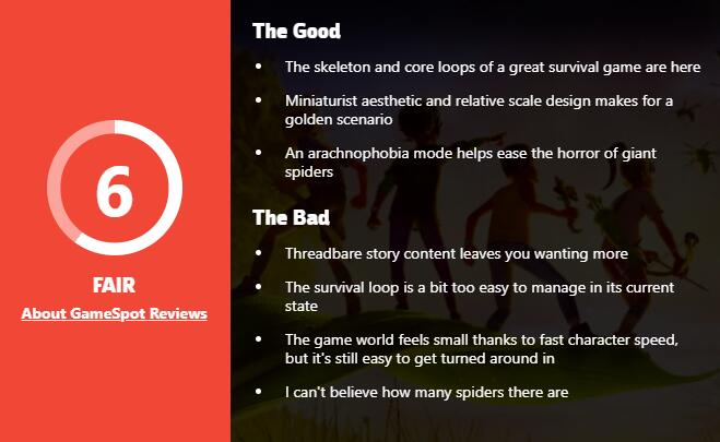 Gamespot为求生沙盒类游戏《Grounded》给出6分评分