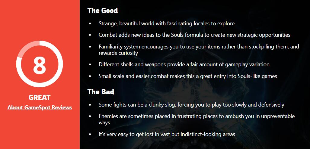 《致命躯壳》GameSpot评分8分,接触类魂游戏不错的开始