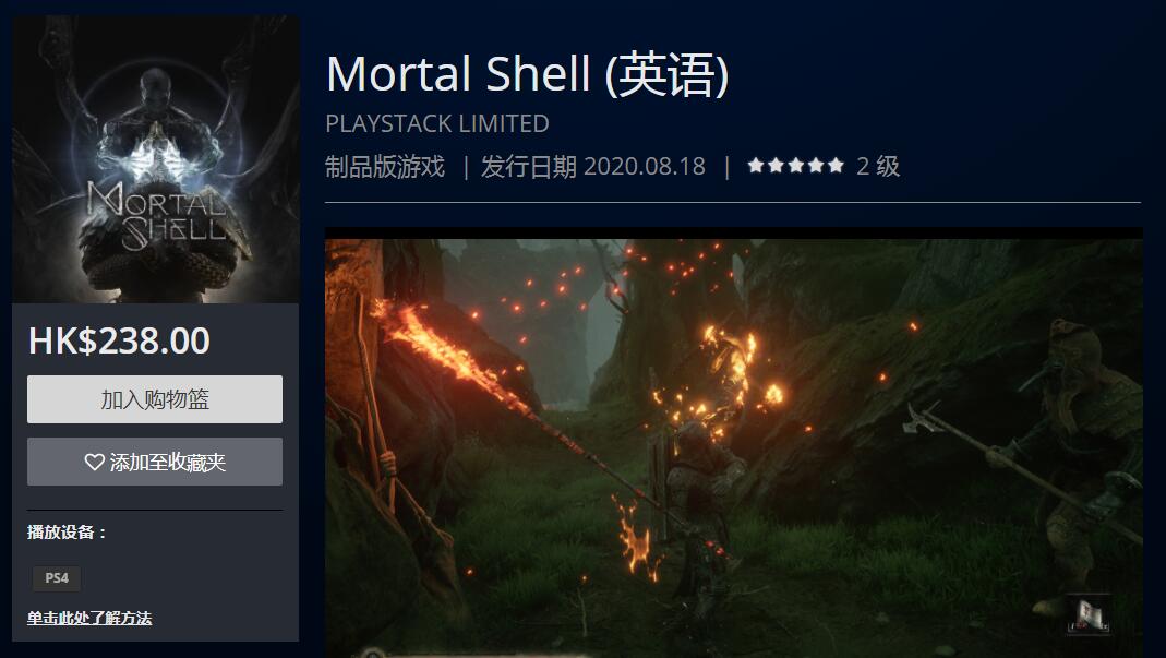 【类魂动作游戏《致命躯壳》已在PSN HK商店率先解锁发售】由Cold Symmetry打造的类魂动作游戏《致命躯壳》目前已在PSN HK商店率先解锁发售,游戏售价238HKD(约212元),不过目前游戏页面标注为英文版,暂不清楚游戏内是否包含中文(因为本作PC版此前已确认包含中文)。此外,本作在Xbox和Epic Games平台还尚未解锁发售,其中Epic Games平台售价为19.99美元(约138元)。
