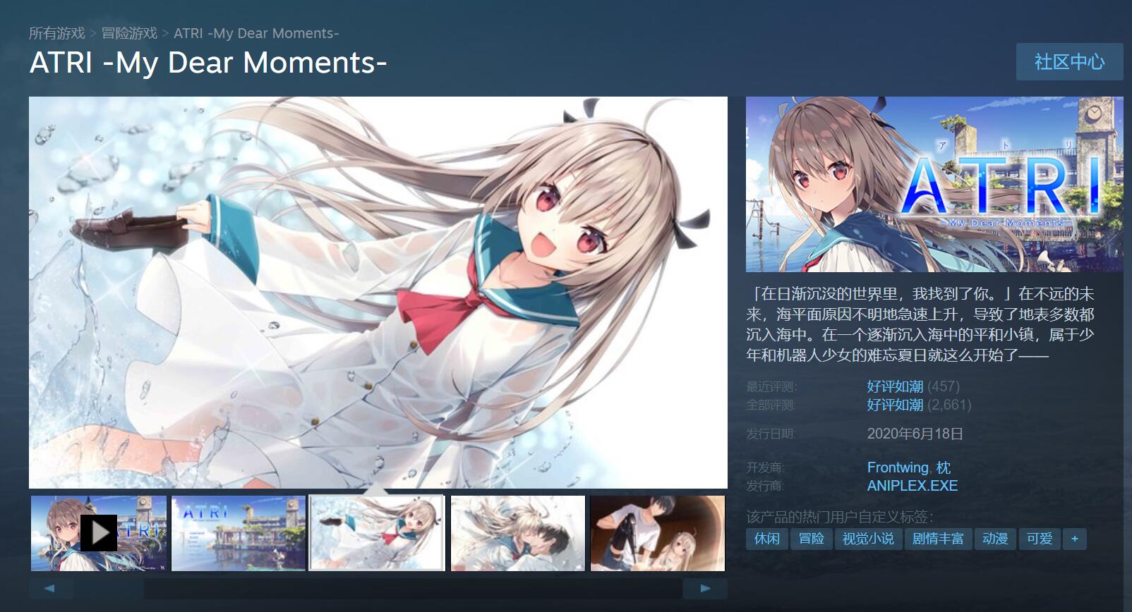Steam视觉小说游戏《ATRI -My Dear Moments-》开启优惠