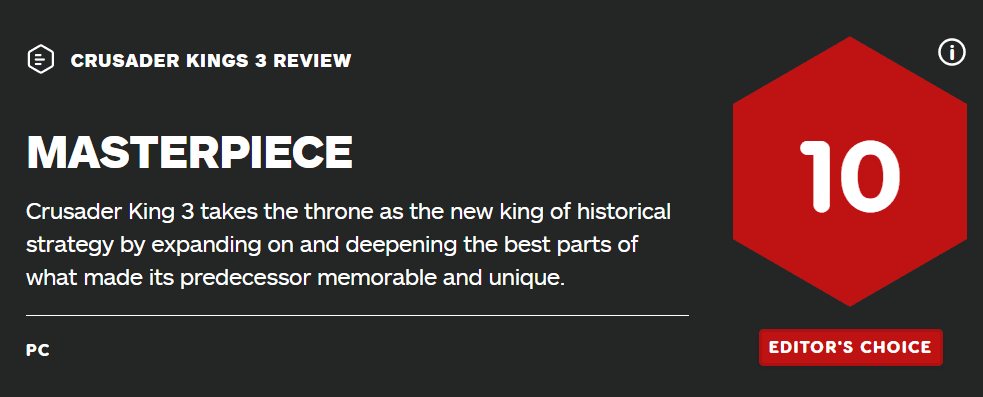 《十字军之王3》获IGN满分评价:新的历史战略游戏之王已经加冕!