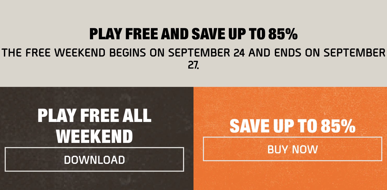 【《全境封锁2》再次开启免费周末,游戏1.5折促销中】育碧官方宣布将于9月24日-27日再次开启《全境封锁2》的免费试玩周末。在免费周末开启的同时,《全境封锁2》游戏本体也在Uplay平台1.5折促销中,想要体验游戏的同学可以在免费游玩之后酌情入手。