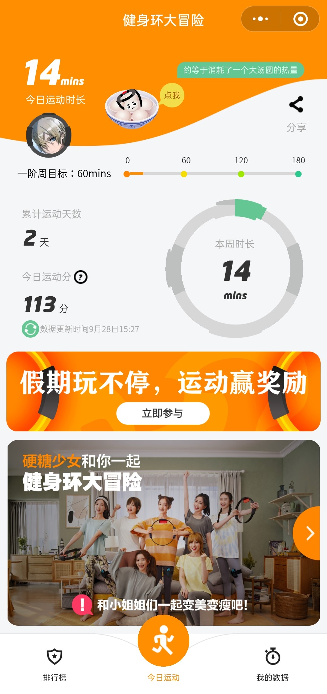 国行《健身环大冒险》小程序现已上线,支持运动数据查询分享
