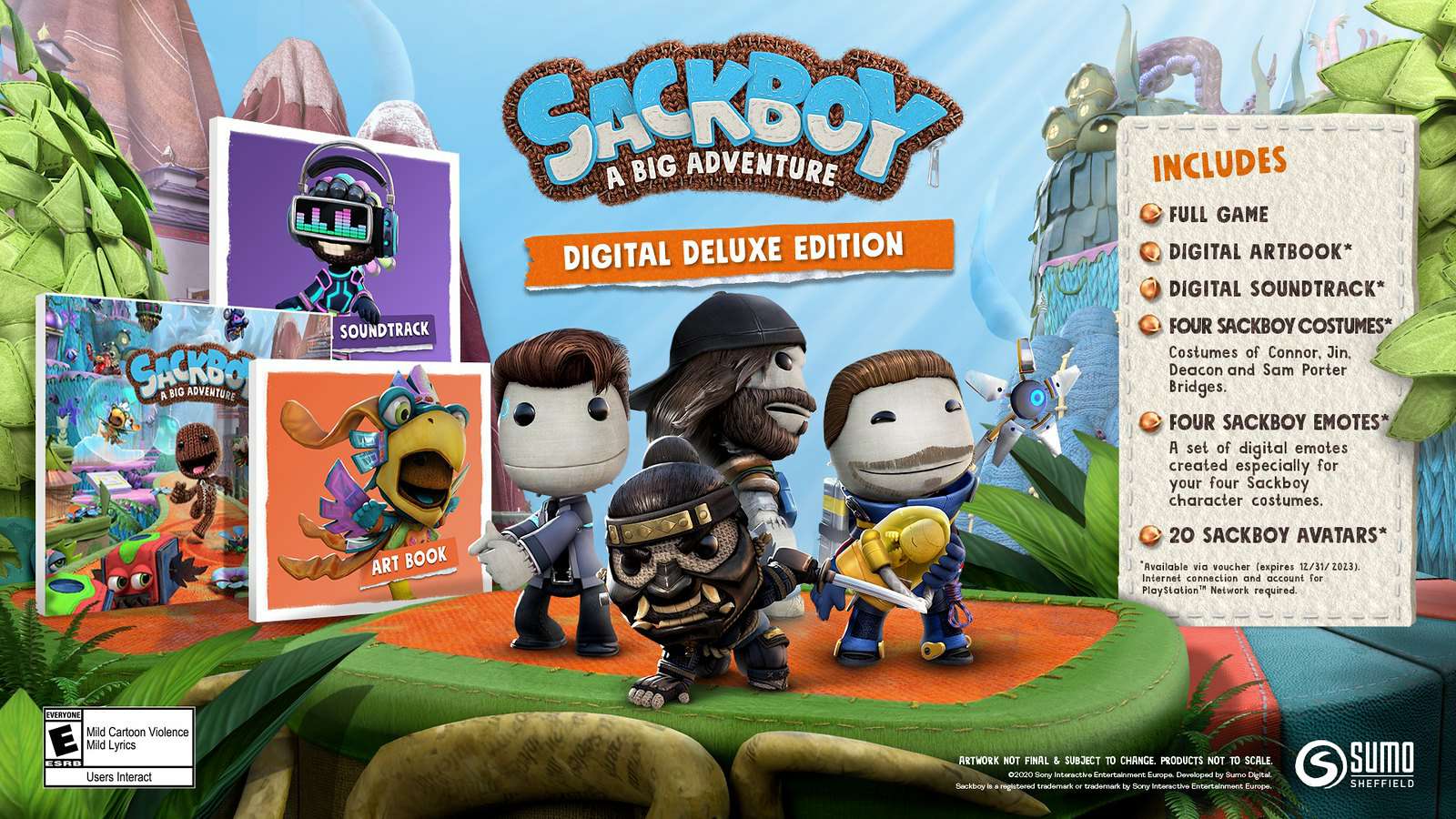 【《麻布仔大冒险》数字版预购特典介绍】《麻布仔大冒险》将于今年11月首发登陆PS5平台。PlayStation官方今日通过官方博客公布了游戏数字版的预购特典情况。首先,预购任何版本的玩家现在都会得到一份数字漫画《the Gathering Storm》,在这本漫画中,你将发现麻布仔的导师、手工艺品世界最后一位针织骑士的神秘过往。如果你你预购了数字豪华版,除了数字漫画,你还会收到一本展示了Sackboy美丽的、精心制作的世界,以及栖居其中的怪异奇妙的生物的数码艺术书籍,一张游戏原声带,4款分别来自《死亡搁浅》、《对马之魂》、《底特律:化身为人》以及《往日已逝》人物造型的麻布仔服装,还有20个穿着不同服装的麻布仔化身。最后,购买限量特别版的玩家将获得数字豪华版中所有的内容,外加一本实体的艺术书籍和一个可爱的实体麻布仔玩偶。