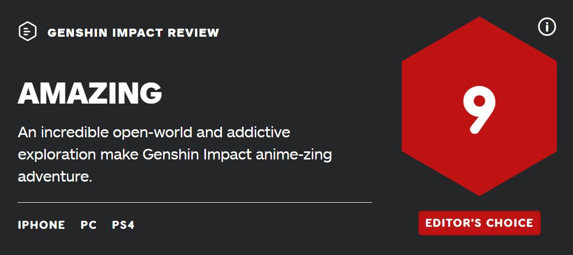 《原神》获IGN 9分评价:一款令人惊叹的开放世界冒险游戏