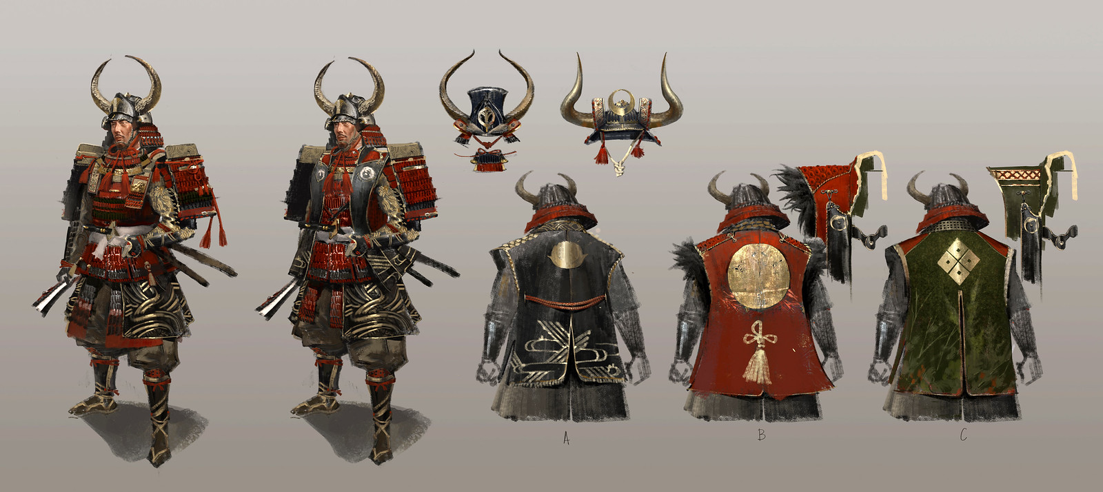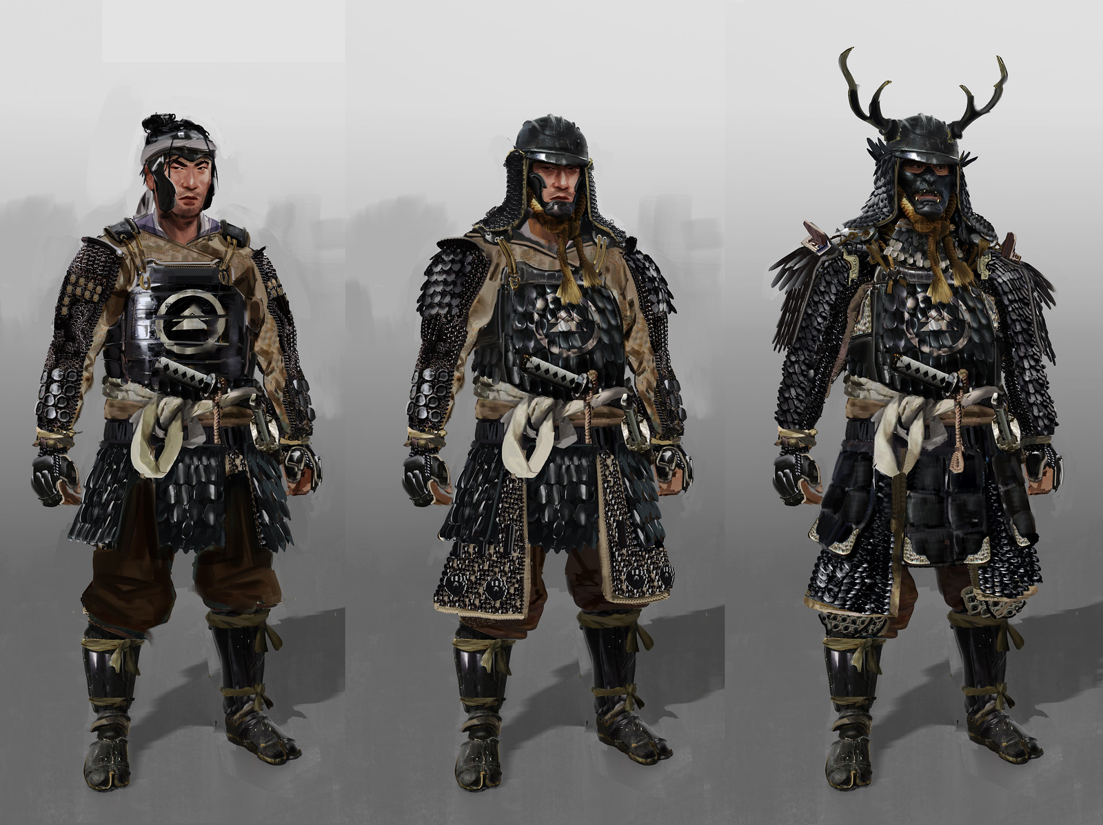 【《对马之魂》海量艺术图公布,从镜井仁到对马岛】今日,PlayStation官方博客公布了《对马之魂》的海量艺术图。该组截图由Sucker Punch首席艺术家Ian Jun Wei Chiew绘制,展示了主角镜井仁以及部分配角的角色设计、镰仓时代和平安时代风格的盔甲设计、以及镰仓时代的农场,城镇、城堡、神社和庙宇设计等等。(图片较多,请尽量使用wifi网络浏览)