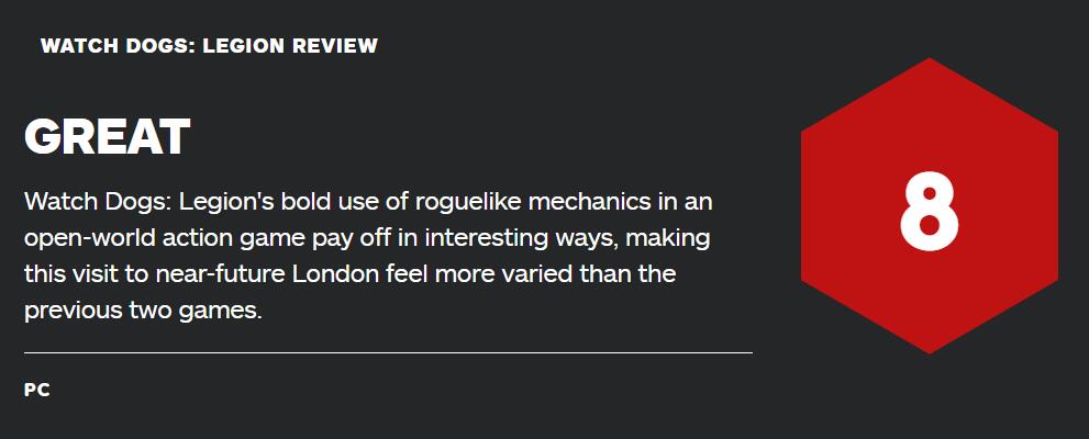 《看门狗:军团》媒体评分出炉:IGN/GameSpot均给出8分