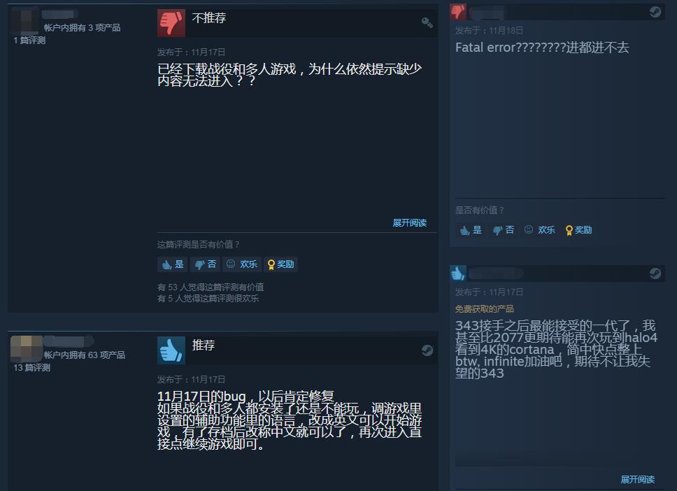 《光环4》Steam评价褒贬不一,游戏不错但Bug太多