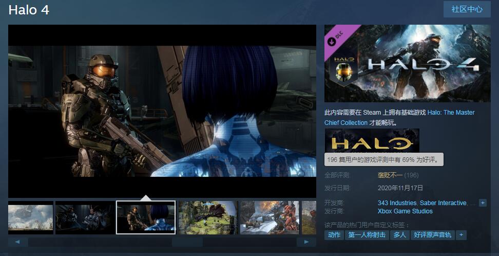 【《光环4》Steam评价褒贬不一,游戏不错但Bug太多】《光环4》于昨日正式发售,游戏已经加入《光环:士官长合集》。目前游戏在Steam上的评价为“褒贬不一”,好评率69%。首先大部分玩家对于游戏本身的质量都比较满意。但是很多玩家都遇到了缺少游戏内容无法进入游戏的Bug。除此之外,还存在一些过场动画没有音效,部分场景画面模糊等问题。评论区有玩家指出,在设置里把语音改成英语,就可以进入游戏了。希望官方能够尽早对游戏进行优化。《光环:士官长合集》Steam售价116元,合集内共包含6部作品。