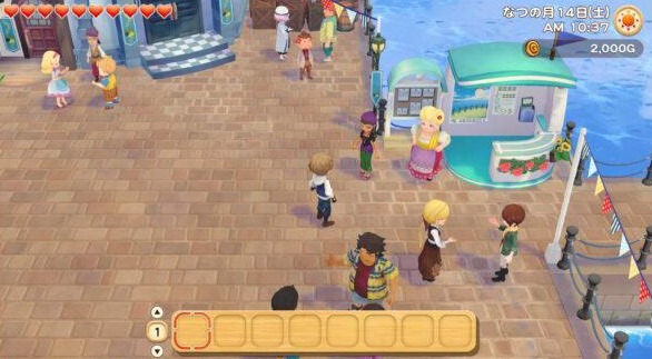 4. 前往城镇并发展。与前作一样,在小镇上可以和居民送礼对话等增加感情。因为这里是一个几乎没有游客的港口城市,所以帮助小镇成为一个有名的观光地吧!此外小镇也可以购物,随着发展的壮大,可购买商品的种类也会变多。