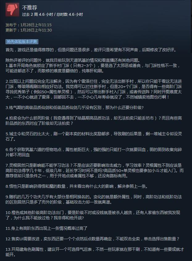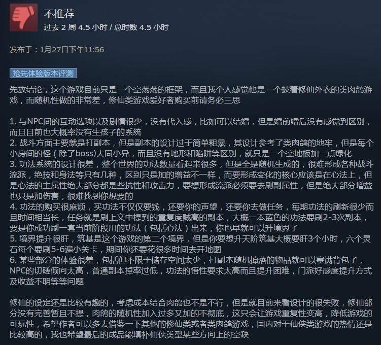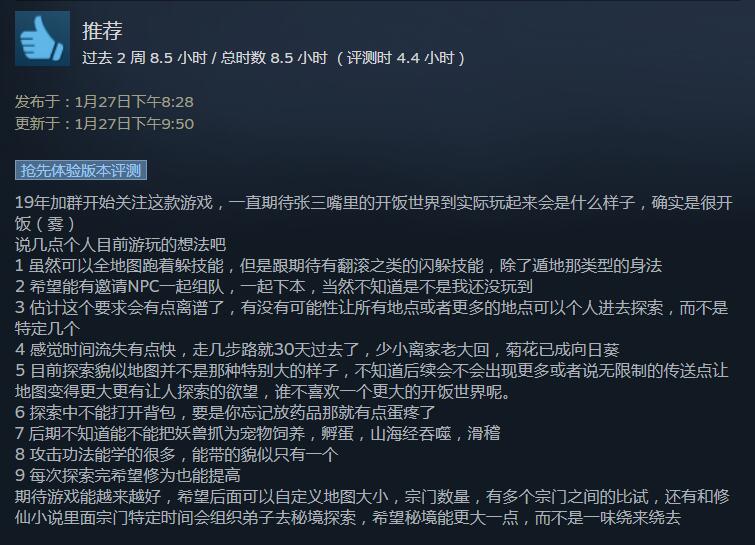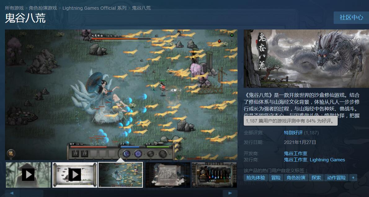 【《鬼谷八荒》Steam获“特别好评”,角色立绘获好评,但部分系统体验有待优化】由国内鬼谷工作室开发的游戏《鬼谷八荒》目前登顶Steam全球热销榜第一,《鬼谷八荒》是一款开放世界的沙盒修仙游戏,结合了修仙体系与山海经文化背景。在Steam上目前的1187篇评测中,有84%的玩家给予了好评,整体为“特别好评”。较多玩家对于游戏美工和角色立绘给予了好评;差评则主要是在于游戏目前存在的一些BUG,以及各系统的上手体验方面还有待开发组后续优化调整。