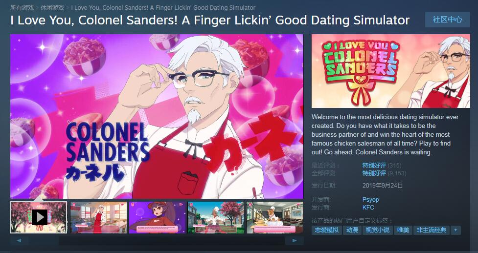 【肯德基又玩“花活儿”?吸血鬼夫人遇上山德士上校?】喜欢玩各种“花活儿”的肯德基游戏在2019年推出了一款免费游戏《我爱你,山德士上校!吮指约会模拟器》。在这款游戏中,玩家可以扮演烹饪学校的学生学习如何制作美味的炸鸡,还能攻略山德士上校。而最近,肯德基游戏又“蹭”上了《生化危机8》的热度。官方发布了一张山德士上校和蒂米斯特雷库夫人同框的宣传图,并配文“《肯德基约会模拟器:第二部》,可以说是有点棘手了...”虽然大家都很乐意看到蒂米斯特雷库夫人能够出现在游戏中,但这也有很大概率是官方的恶搞。还有玩家在评论区追问能够加热炸鸡的KFC游戏主机究竟什么时候能推出...