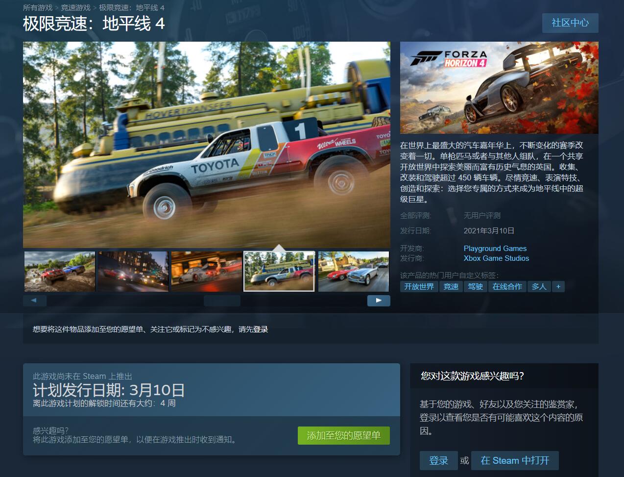 《极限竞速:地平线4》3月10日登陆Steam,支持跨平台联机