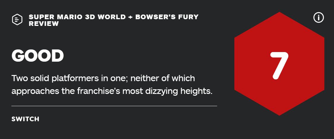 【《超级马力欧3D世界+库巴之怒》媒体评分出炉:IGN 7分/GS 9分】《超级马力欧3D世界+库巴之怒》的全球媒体评分解禁,IGN给出7分,GameSpot给出9分的评价。