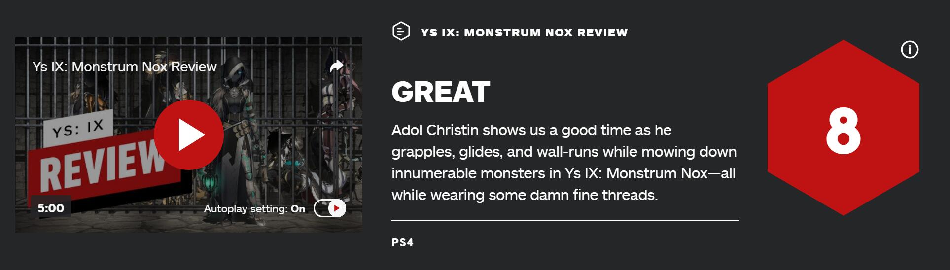 【IGN为《伊苏9》获打出8分评价】随着《伊苏9》英文版的即将发售,IGN为本作给出了8分的评价。IGN认为《伊苏9》的外观、玩法以及音效都与《伊苏8》相似。但本作更加强调故事情节和新的移动操作系统,如抓取、滑翔以及爬墙等,让其有了自己的玩法和特点。更巧妙的是,对伊苏剧情抱有求知欲的动作RPG迷们完全不用担心错过正在进行的故事。