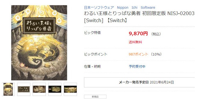 【日本一新作《糟糕国王与杰出勇者》将于6月24日发售】近日日本经销商BicCamera线上商店上架了日本一的最新作《糟糕国王与杰出勇者》(暂译),泄露页面为Switch版本,发售日为6月24日,目前官方暂无发表有关信息,商品界面也已删除。本作是一部绘本之旅的RPG游戏,看起来与之前的《说谎公主与失明王子》有些相似。主要描绘的是异种族之间通过交流应运而生的暖心故事。人类少女“优”是已故勇者的女儿,梦想成为和父亲一样的勇者,而将她抚养成人的国王正是之前和勇者战斗过的魔王“龙”,但他却好好的将她抚养成人,“优”一直憧憬着父亲为了成为优秀的勇者开启了冒险…… 本作主打像绘本一样体验这个有魔物居住的不可思议的世界,柔和的光感以及细腻的画面,个性迥异的角色和故事为玩家们带来一个温暖的画册!