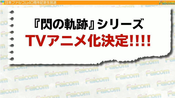 日本Falcom在创社40周年纪念直播活动中宣布《英雄传说:闪之轨迹》将会改编为TV动画,2022年开播。动画将以游戏为基础进行改编,讲述塞姆利亚大陆西部发生的故事,动画可能包含部分原创剧情。