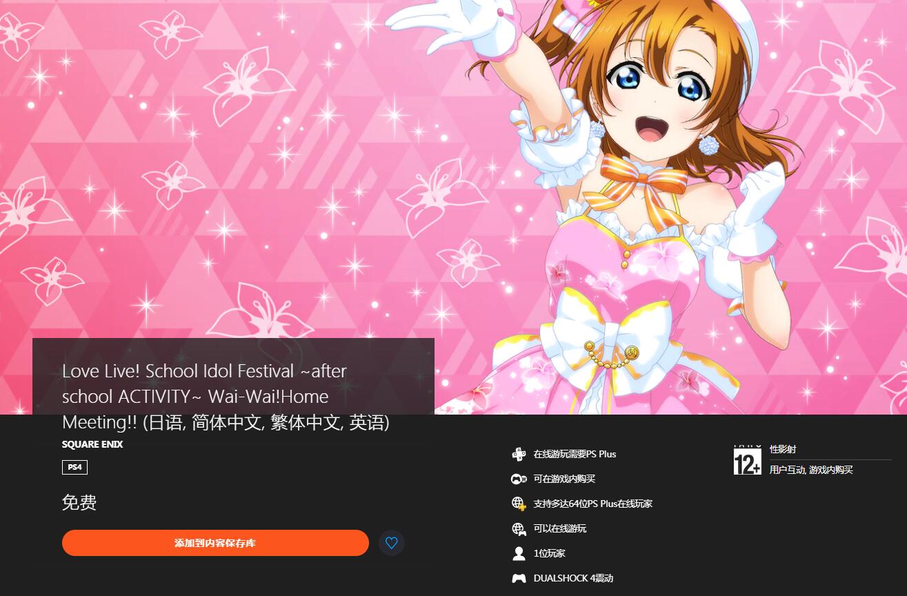 PS4免费游戏《Love Live! 学院偶像祭》上架,全DLC总价约3500元