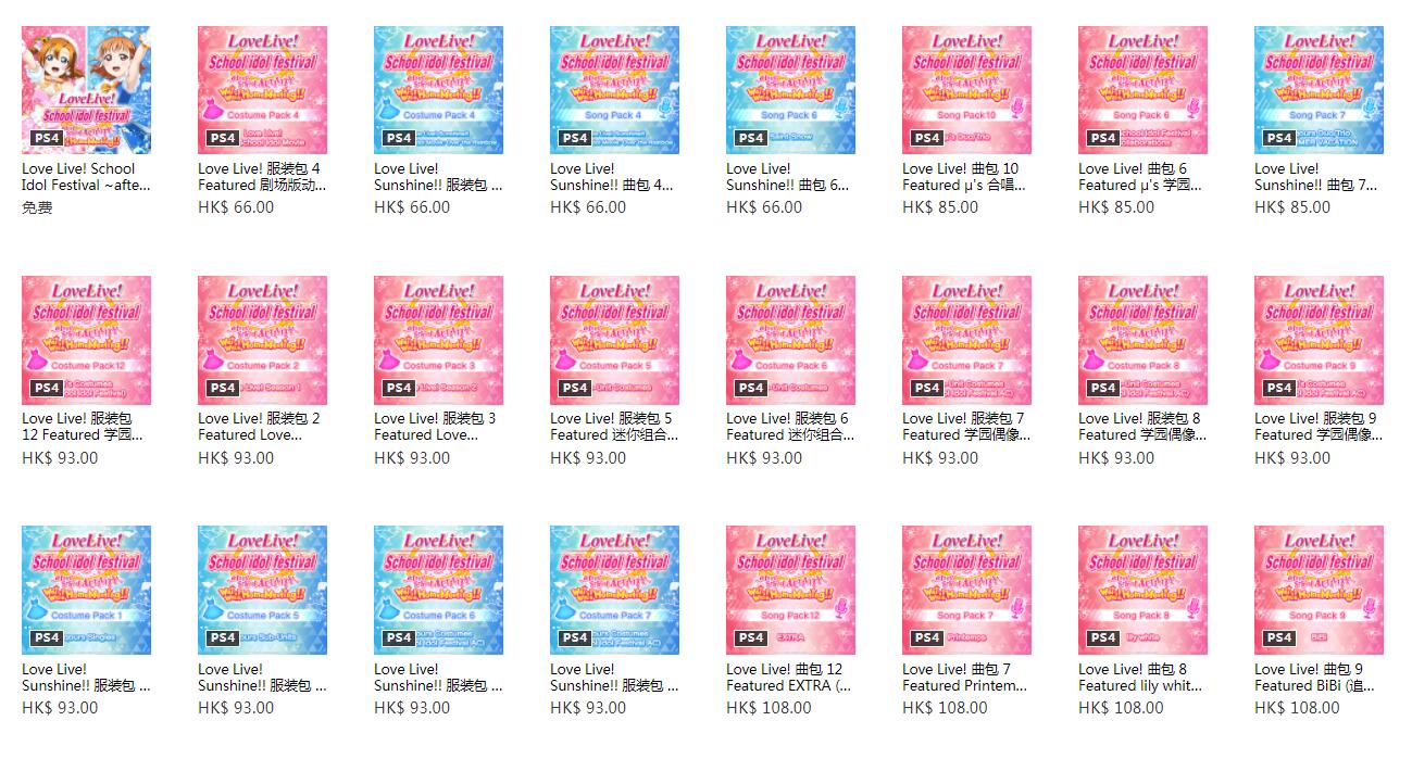 【PS4免费游戏《Love Live! 学院偶像祭》上架,全DLC总价约3500元】PS4《Love Live! 学院偶像祭》中文版目前已经在PSN HK商店上架,游戏采用免费下载游玩的方式,初始版本包含8首歌曲和3套服装,目前总共上线了40个单独DLC包(包括歌曲、服装等内容),如果要全部买全需要花费4283HKD(约3594元)。