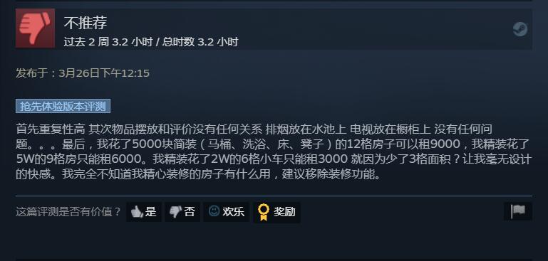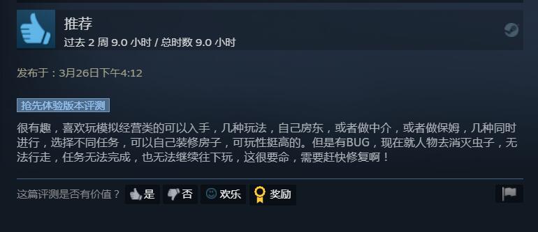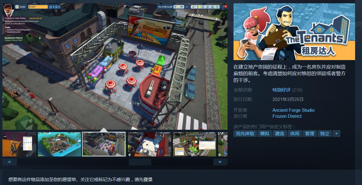 “房东模拟器”《租房达人》上线Steam,目前总评为“特别好评”