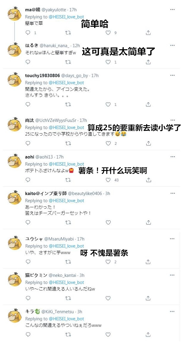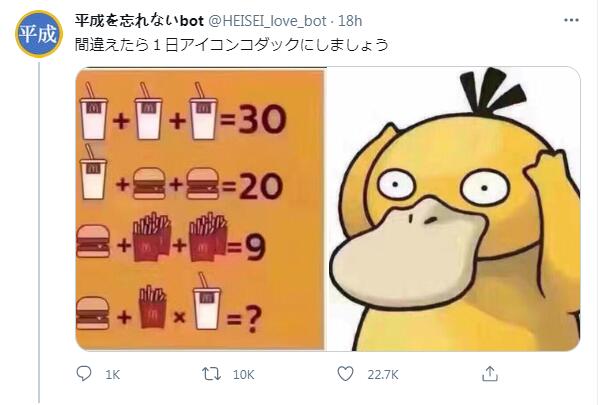 【日推可达鸭“大量发生中”,答错题就要换可达鸭头像】曾经一度流行的答错题换头像游戏今天又在日推上流行起来,甚至还登上了热门趋势榜。游戏就是平时常见的看图算数,但是算错的话就要拿可达鸭当一天的头像。结果就是一群在评论里大喊着“简单至极!”的人,回过头去已经换上了可达鸭的头像...总之,今天大家都是可达鸭!还有一位朋友换上了柯达的头像(日语中柯达与可达谐音)。