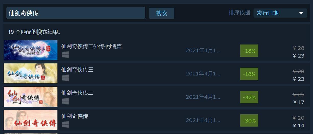 【四部《仙剑奇侠传》经典游戏现已登陆Steam】《仙剑奇侠传》、《仙剑奇侠传二》、《仙剑奇侠传三》、《仙剑奇侠传三外传·问情篇》四部游戏现已登陆Steam平台,售价分别为14元、17元、23元、23元(首周折扣截止至4月22日)。其中《仙剑奇侠传》包含《仙剑奇侠传 98柔情篇》及《仙剑奇侠传Dos版》两个不同版本游戏,玩家可在启动游戏前,自由选择执行的版本。但请注意,两个版本存档不可共用。