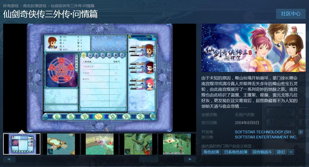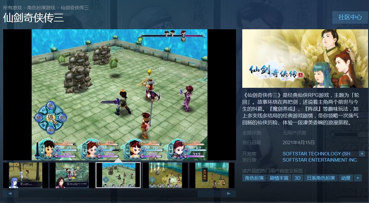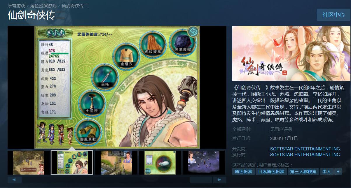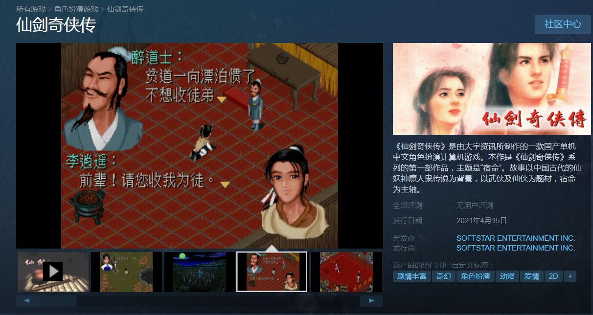 四部《仙剑奇侠传》经典游戏现已登陆Steam