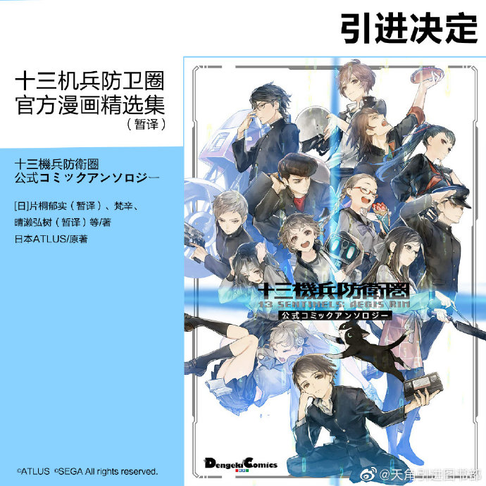 【《十三机兵防卫圈 官方漫画精选集》确认引进国内】天角引进图书部官博确认,将引进《十三机兵防卫圈 官方漫画精选集》作品,目前具体发售时间与售价尚未公布。“十三机兵防卫圈 官方漫画精选集”由片桐郁实、梵辛、晴濑弘树等画师参与绘制,包含8篇漫画作品。此外,在评论区中,官方还表示《十三机兵防卫圈》官方设定集的引进也正在努力中。