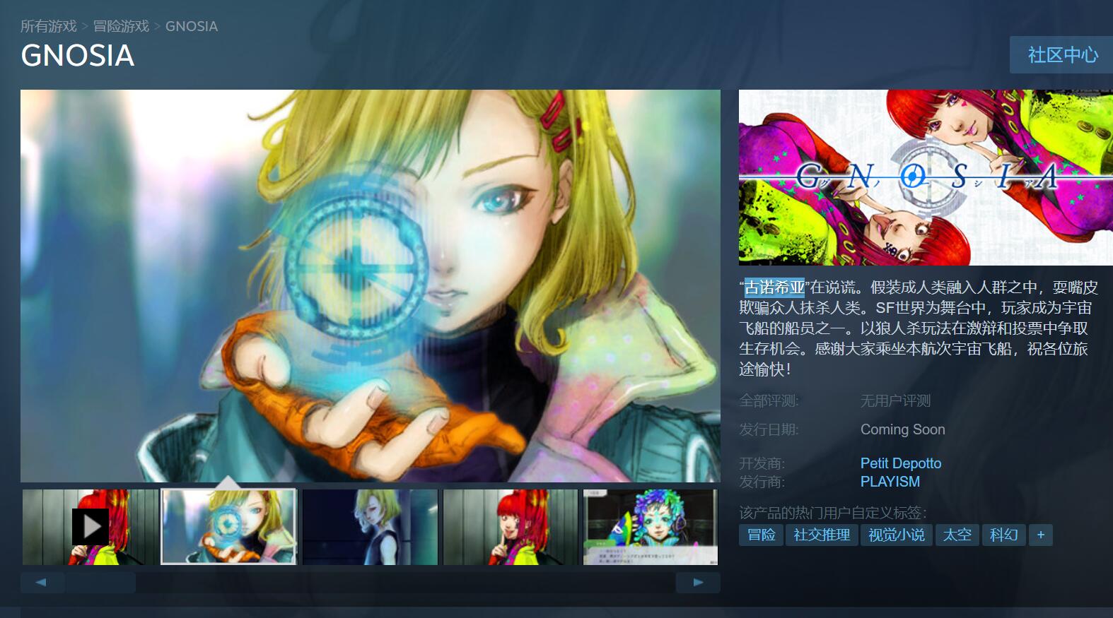 【狼人游戏《古诺希亚》确认中文化】狼人游戏《GNOSIA》确认将于2021年内登陆Steam平台,届时将追加中文支持,该游戏官方中文名为《古诺希亚》。《古诺希亚》是一款狼人游戏为主题的文字冒险游戏,曾获IGN日本满分评价,《古诺希亚》不同于类似游戏的线性剧情,而是在狼人游戏的基础上加入了RPG元素,玩家可以选择增加所选角色的各项属性。例如提高友善值,那么你在与NPC角色交流时,你的建议能更容易被接受;提高直觉,你能发现NPC角色的谎言。你的不同选择加点,能产生出不同的游戏玩法。