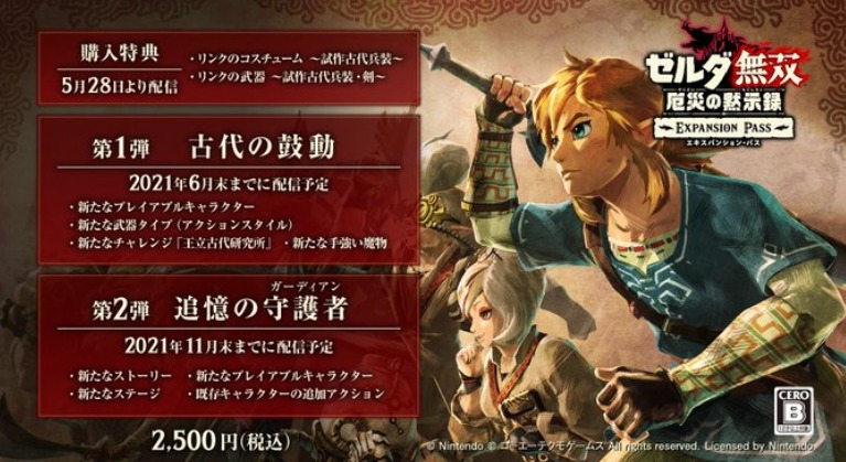 【《塞尔达无双 灾厄启示录》 季票内容公布,5月28日推出】NS游戏《塞尔达无双:灾厄启示录》季票将于5月28日上线,售价2500日元(本体+季票 10420日元)。作为购入特典附送的“林克的试作古代兵装/武器”会于5月28日放出。本次DLC季票共为两次,预计分别于6月末和11月末推出,具体如下: