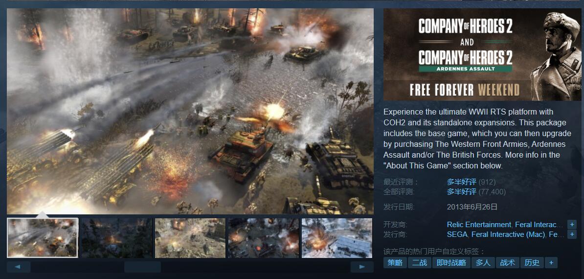 即时战略游戏《英雄连2》《英雄连2:阿登突击》Steam开放免费领取