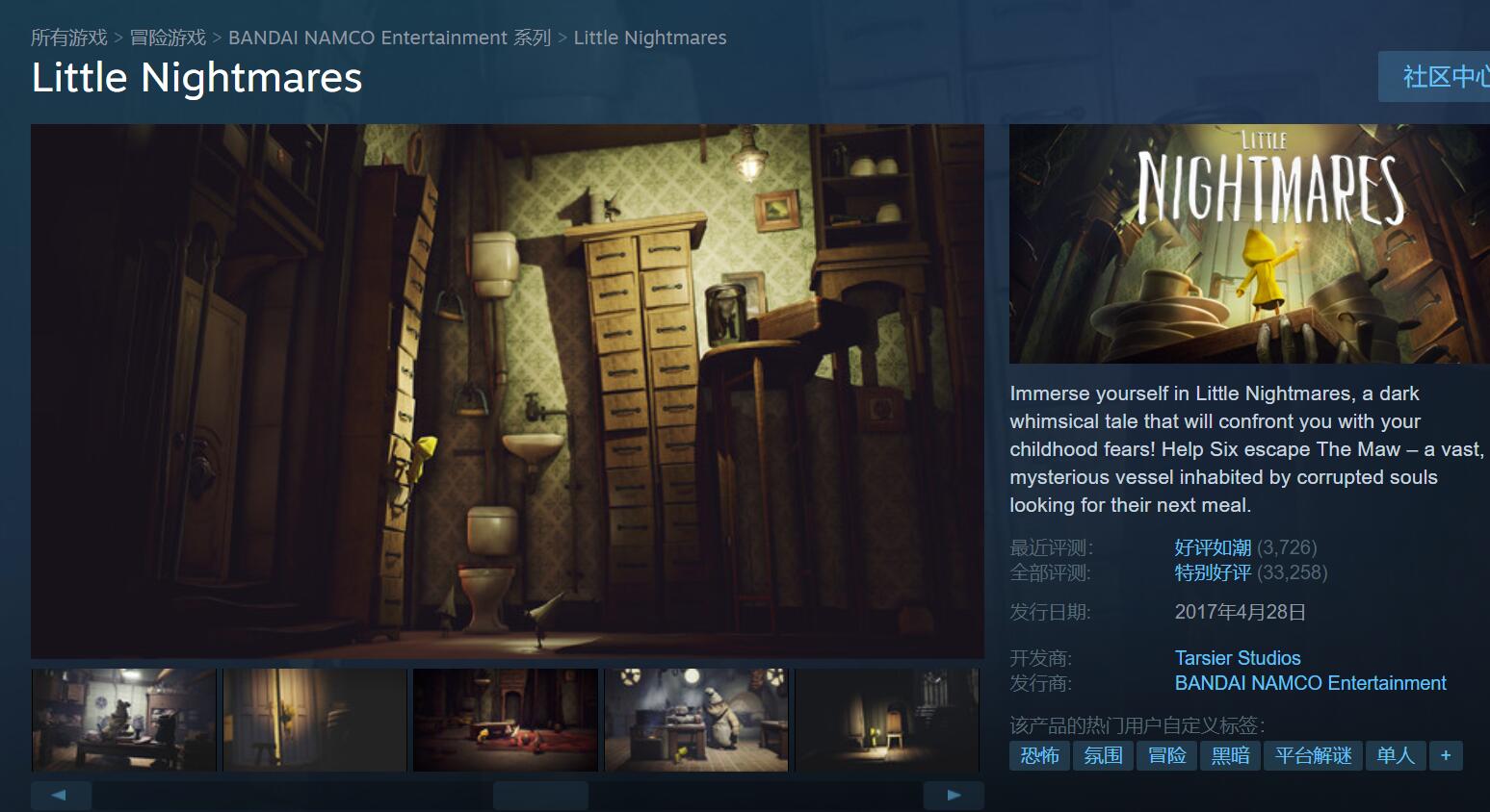 【《小小梦魇》Steam开放免费领取】惊悚冒险游戏《小小梦魇》目前正在Steam平台开放免费领取活动,原价168元,包含中文,玩家总评“特别好评”,领取时间截止至5月31日凌晨1点。