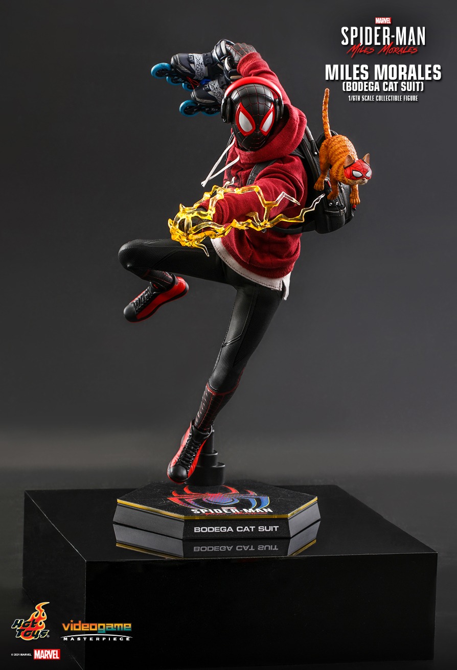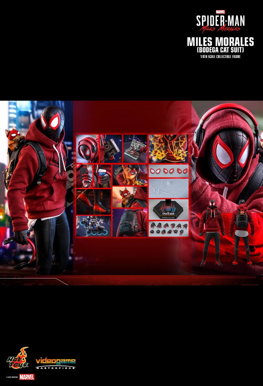 【HotToys推出《漫威蜘蛛侠:迈尔斯·莫拉莱斯》可动手办】今日,HotToys正式公开了其下的一款相关主题新品:《漫威蜘蛛侠:迈尔斯·莫拉莱斯》1:6比例的珍藏手办,该手办穿上了一套要完成游戏内支线任务:”猫咪的睡衣“才能解锁的一套服装:”杂货店之猫战衣“。该款手办将有大约拥有32厘米高,30个可动关节位置,能够任意由玩家摆放,列表中将附赠以下配件:两只保持不同状态的戴着蜘蛛面罩的肥猫,一个背包以及其配件(用来呈现打开或关闭状态),两件爆炸特效配件,一副耳机,一个咖啡杯,一部智能手机,一个涂鸦本,一个礼物盒,六条蜘蛛丝,一个定制底座,几副可替换面部蛛眼。本款手办将于2022年第三至第四季度发售。