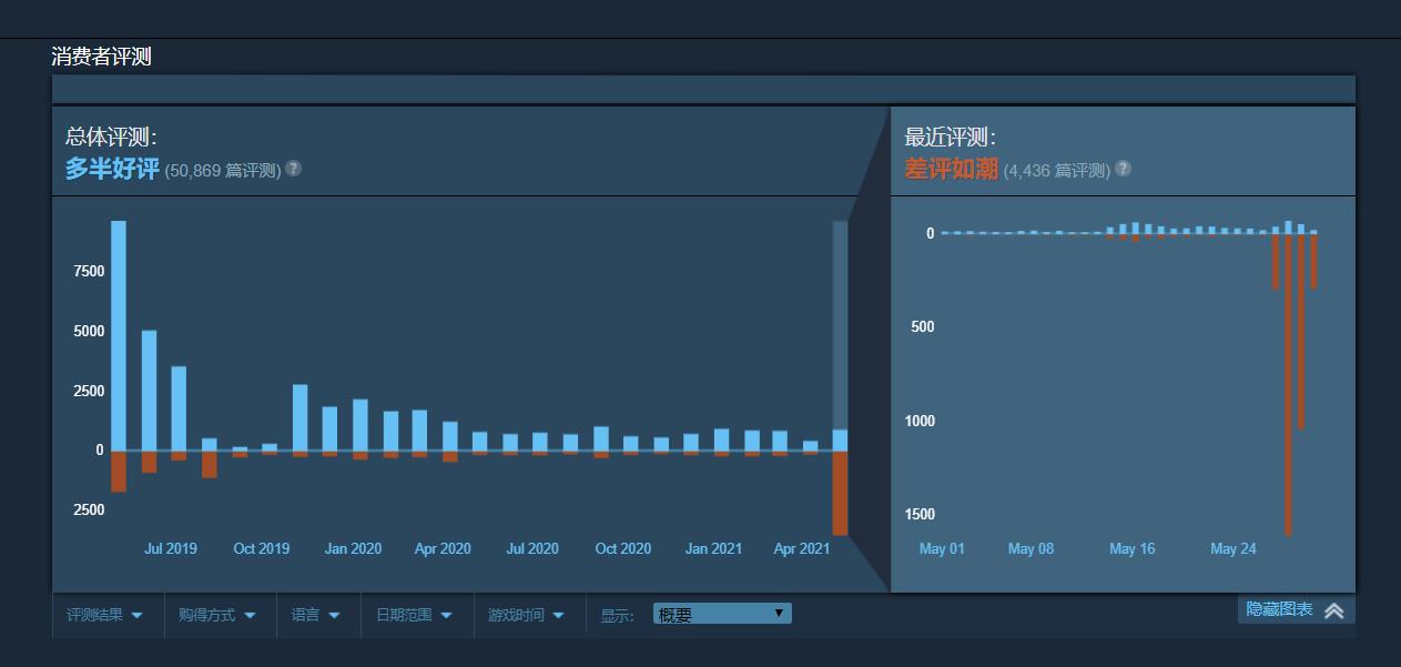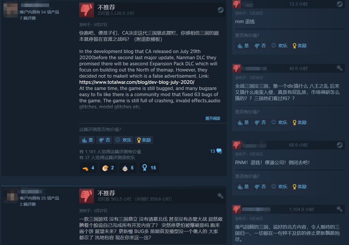 【在宣布停止更新后,《全战:三国》在Steam上的好评率直线下降】《全面战争:三国》这款回合策略类游戏在2019年5月发布,受到许多玩家的喜爱。而最近,官方宣布停止游戏的后续开发与更新,将资源转到另一项目《全面战争:战锤3》中。这种做法似乎另不少喜爱这款玩家们感到不满,而游戏在Steam上的评价亦受到影响。5月27日之后,游戏获得了4000多条负面评论,这导致这款游戏在Steam的近期评价变为了“差评如潮”。一位在游戏中花费了745小时的玩家表示:这纯粹是白费力气。但是也有另外的声音:游戏是好的,你不能因为制作组的原因就故意破坏它,这让Steam的评论系统变成了一件坏事,要发声的话可以去另外的平台。总而言之,希望玩家能够理性看待,毕竟它也曾给大家带来过欢乐。
