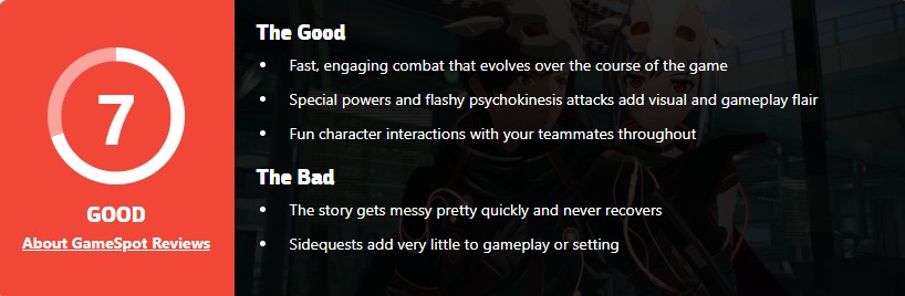 Gamespot认为:本作在战斗方面令人惊艳,快速且在不断进化的过程中很是吸引人。角色特殊能力和华丽的精神攻击不仅增加了视觉效果也让游戏的风格别树一帜。角色之间的互动也十分有趣。但是游戏在剧情上着实让人无法满意,进展过快且混乱,并且支线任务做的也是可有可无一般。