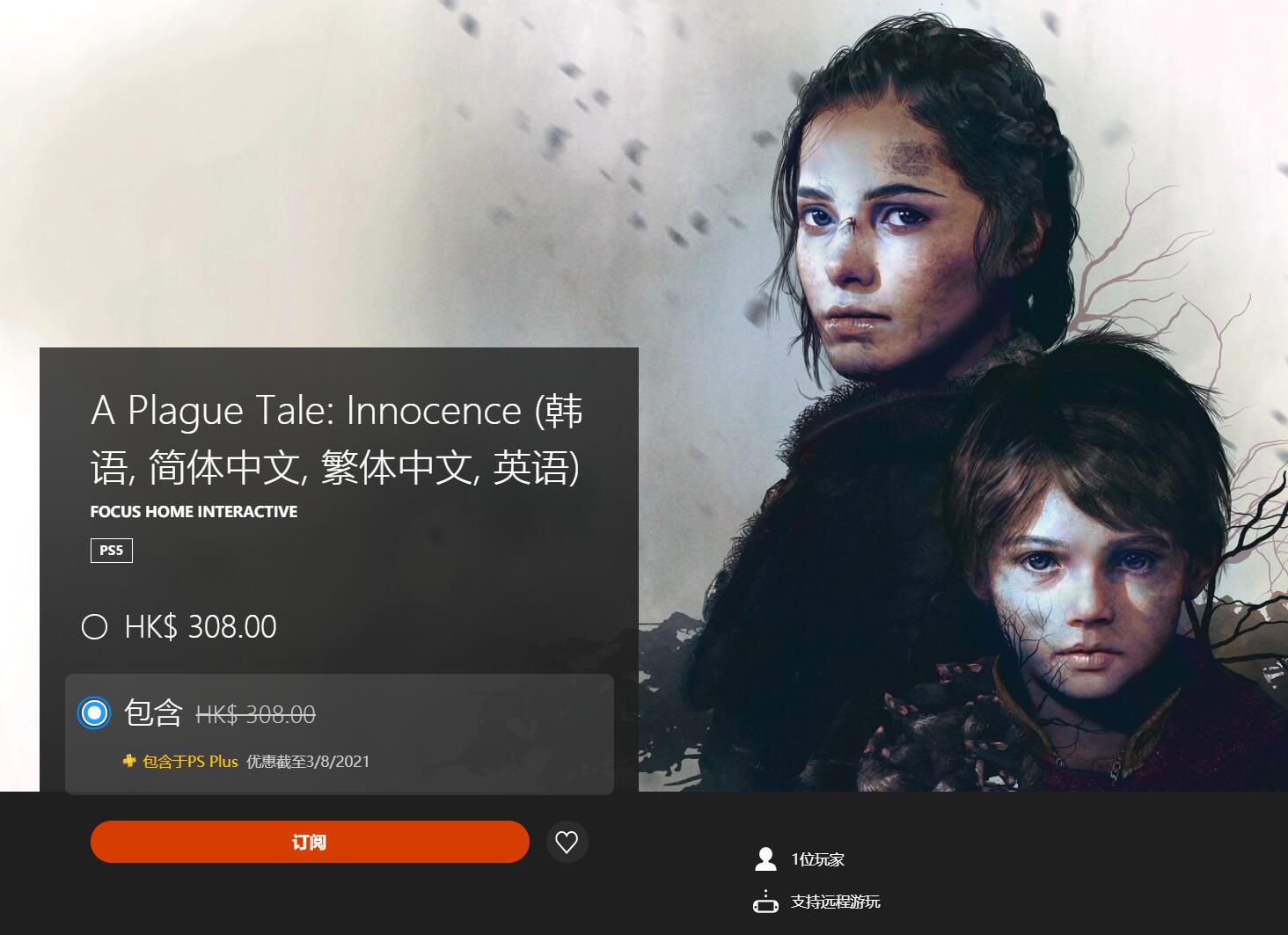 会免游戏PS5《瘟疫传说:无罪》已开放领取