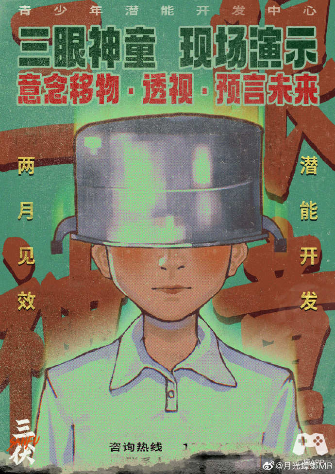 【悬疑惊悚游戏《三伏》新图公开,或以“气功热”、“特异功能”为题材】《烟火》制作人月光蟑螂MR布了一张正在开发中的新作《三伏》宣传图,可以看到图中有着“青少年潜能开发中心”、“三眼神童”、“意念移动”、“透视”、“预言未来”等字样,有玩家推测此次《三伏》的剧情或将以“气功热”、“特异功能”等伪科学为题材。此前月光蟑螂MR也确认《三伏》不走恐怖路线,而是采用悬疑惊悚线路,游戏的剧本大纲已有雏形,也已经确定基本人设。