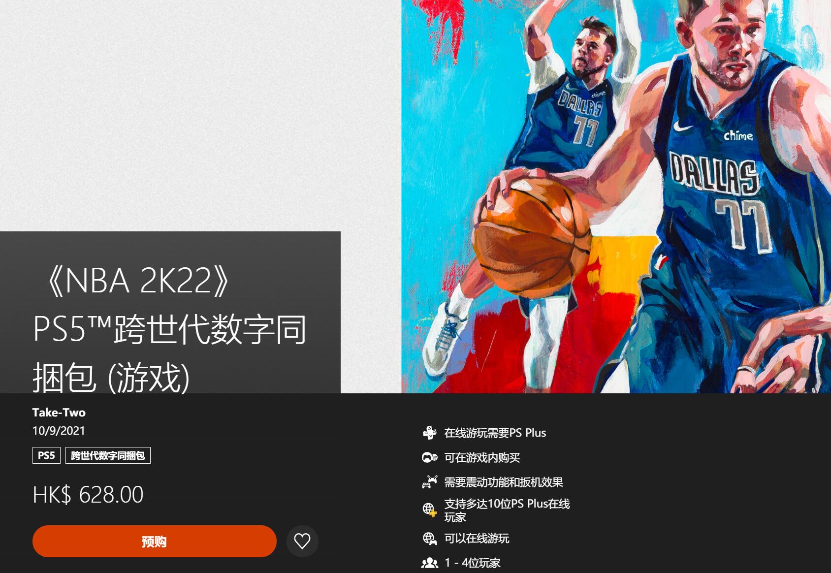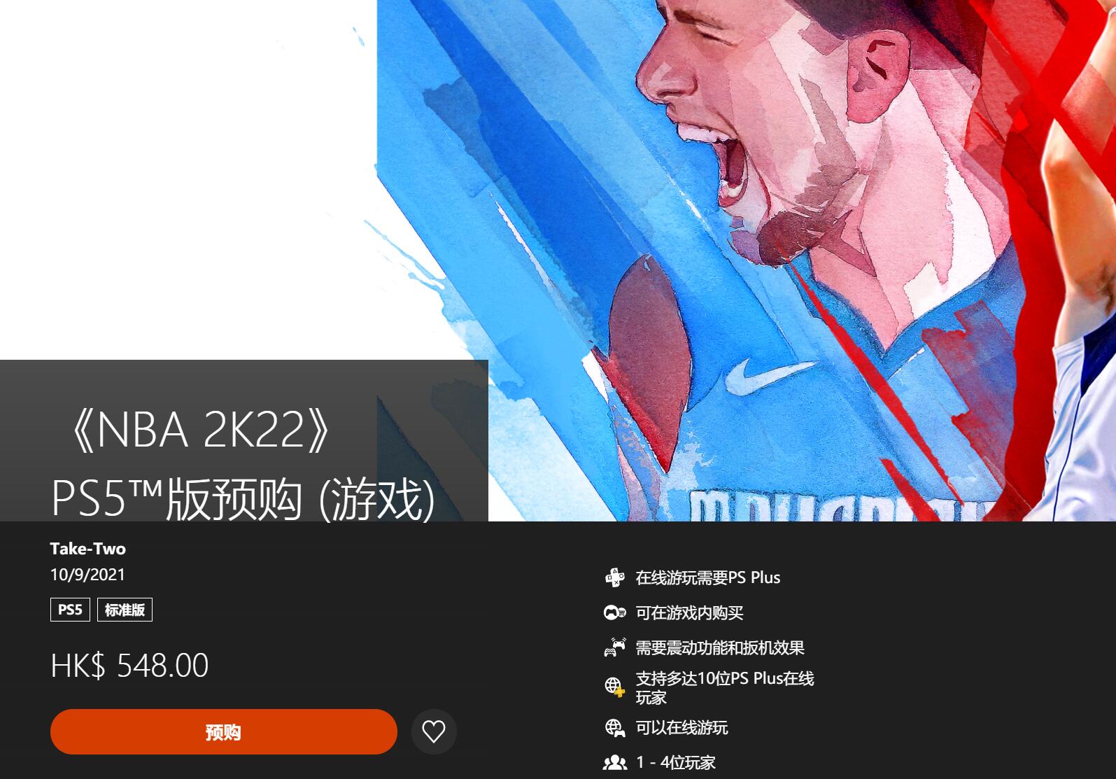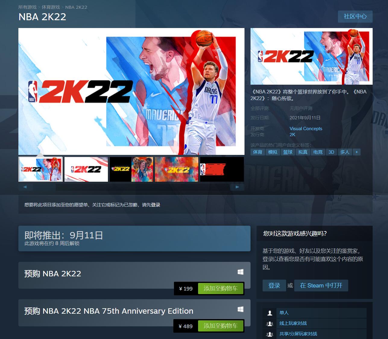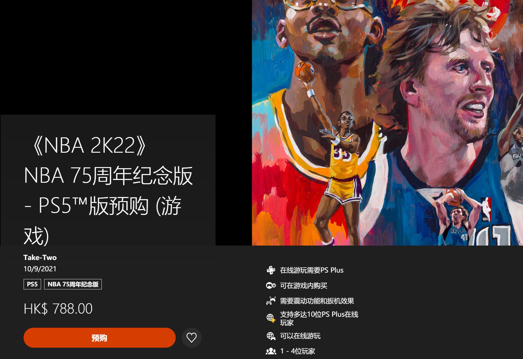 【《NBA 2K22》各平台上架,Steam国区199元】《NBA 2K22》现已在各个平台上架游戏的预购。本作在国区Steam平台标准版售价199元,75周年纪念版售价489元。PSN商店上PS4标准版468HKD,PS5标准版548HKD。跨世代数字同捆包628HKD,75周年纪念版788HKD。Xbox商店各版本售价则与PSN相同。eShop HK商店暂未上架。