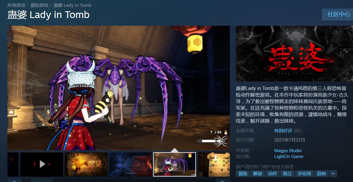 【留言抽40个《蛊婆》游戏兑换码】由Lighton工作室发行,MAGYU工作室制作的第三人称解谜冒险游戏《蛊婆》今日在Steam平台正式发售,定价为68元,首周将提供9折优惠。目前玩家总评为“特别好评”,好评率为88%。好评方面,有玩家评价游戏的解谜系统做的比较用心,且难度也相对合理,游戏玩起来颇有《生化危机》的感觉;不足方面,则是认为战斗手感以及音乐处理上还有待优化。在此我们也为各位玩家们带来了福利,来聊一聊你想要体验该游戏的理由,我们将从参与回复的柄友中,抽出40位柄友,各赠送Steam《蛊婆》1份,活动时间截止至7月26日中午12点。