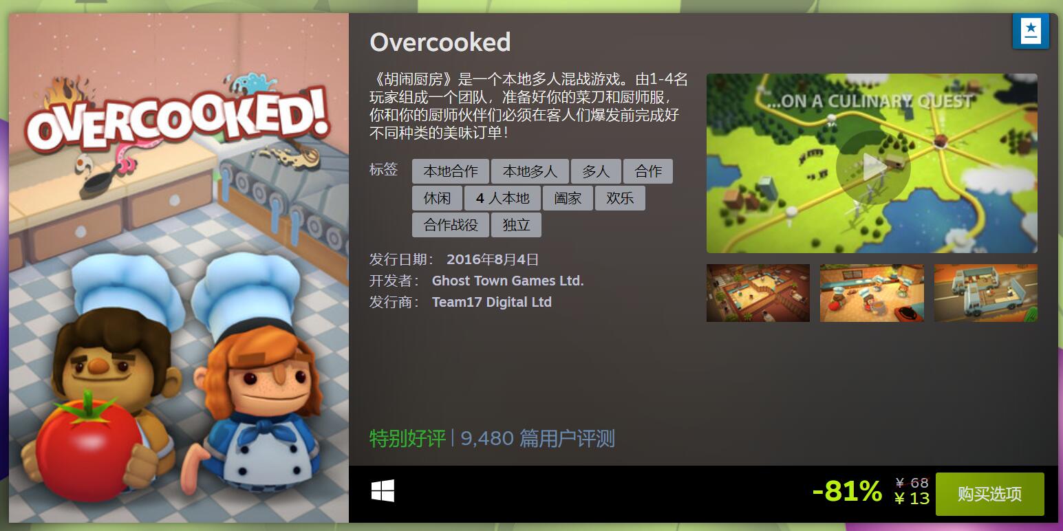 Steam《胡闹厨房:全都好吃》开启限时免费游玩